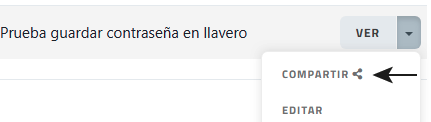 3. Hacer clic en la opción "COMPARTIR" en el registro de la contraseña guardada que se quiere compartir.