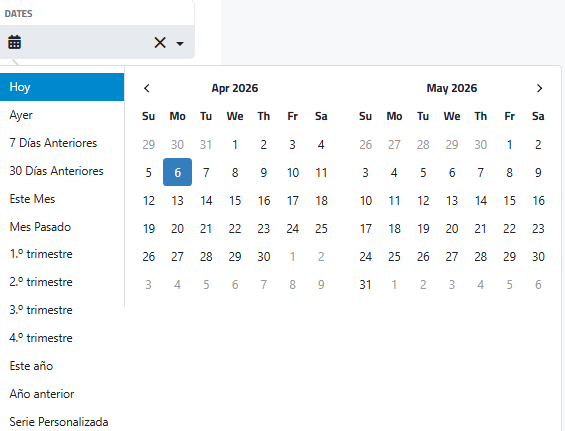 | Iconos de calendario/papelera | Permiten seleccionar o limpiar fechas. |