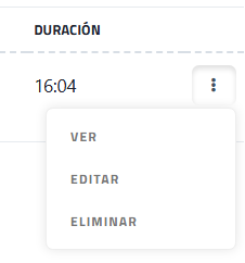 Al hacer clic en el icono (⋮) se despliega el "Menú de acciones"