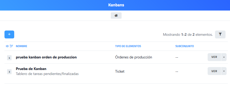 • Botón “VER”. Accede al tablero Kanban seleccionado.