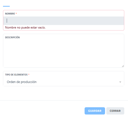 • Columna “Tipo de elementos”. Indica qué tipo de elementos gestiona (órdenes, tickets, etc.).