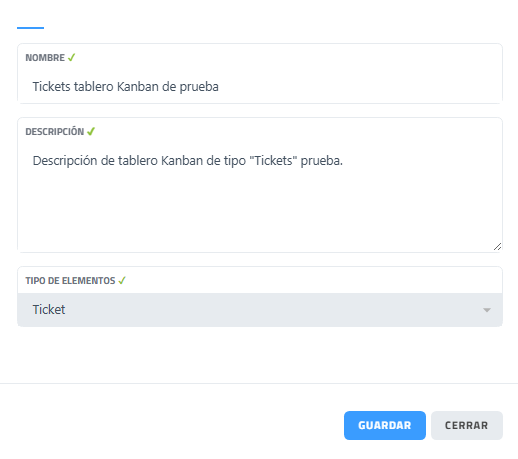 Las etiquetas disponibles para añadir como columnas en un Kanban de tipo de elementos "Tickets" serán las que se han creado para uso con tickets. Al igual que con otro tipos de elementos para que aparezcan las tareas en el Kanban los tickets tiene que tener al menos una etiqueta coincidente con una que está añadida como columna al tablero.