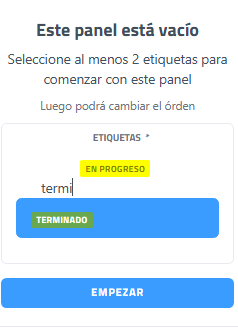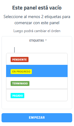 Una vez seleccionadas un mínimo de dos, hacer clic en empezarel botón "EMPEZAR" para que se creen las columnas en el Kanban.
