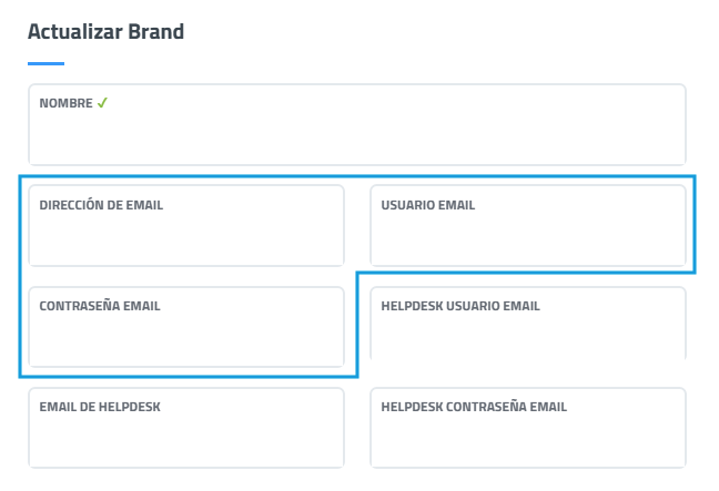 Permite definir los correos electrónicos asociados a la marca. Para poder utilizar posteriormente la configuración SMTP e IMAP, se deben completar los siguientes campos: