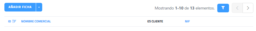 Al acceder a esta sección de ENICO, presenta las empresas (clientes o proveedores) en vista en lista.