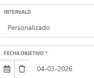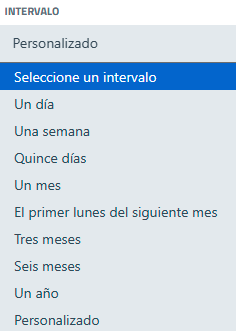 • Intervalo personalizado, Permite especificar una fecha concreta.