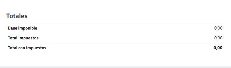 | Total con impuestos. Muestra el importe final del documento, incluyendo impuestos. |