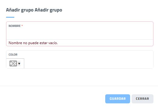 Interfaz de añadir grupo de conceptos