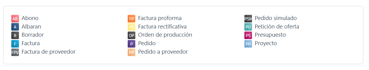Indica visualmente el tipo o estado del documento dentro del ERP mediante codificación por color. |