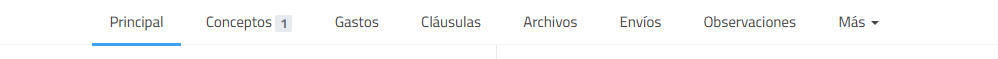 | Pestaña “Conceptos” | Permite visualizar y gestionar los productos o servicios asociados al documento. El indicador numérico muestra la cantidad de elementos añadidos. |