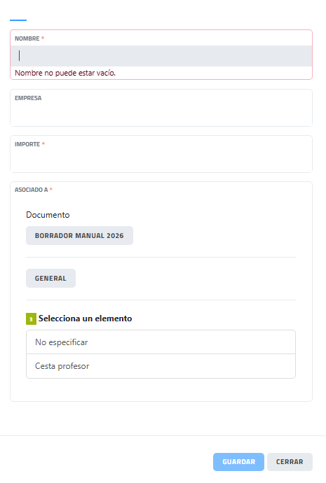 | Documento | Indica el documento al que se añadirá el gasto. |