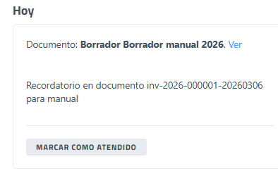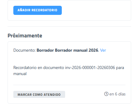 Permite crear un recordatorio asociado al documento. |
