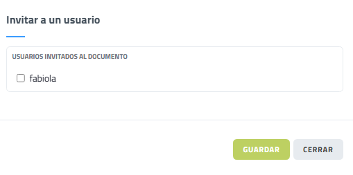 Vista interfaz de invitar a un usuario para que pueda ver el documento.
