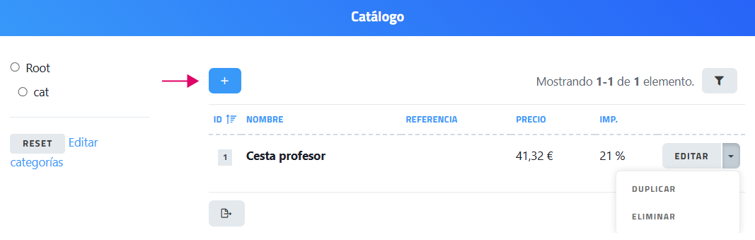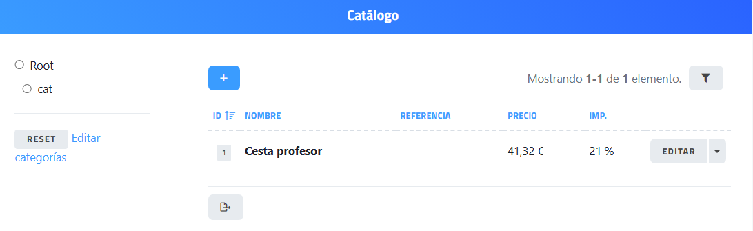 | Botón “+” (Añadir) | Permite añadir un nuevo producto o servicio al catálogo dentro de la categoría seleccionada. |