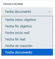 | Fecha a filtrar | Permite seleccionar el tipo de fecha que se utilizará para aplicar el filtro (por ejemplo, fecha de documento).