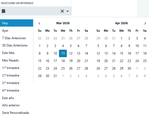 | Seleccione un intervalo | Campo para definir un rango de fechas y filtrar los proyectos según el periodo seleccionado.