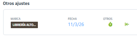 | Otros ajustes | Panel que muestra configuraciones adicionales del proyecto, como marca, fecha u otros indicadores relacionados. Para actualizar: