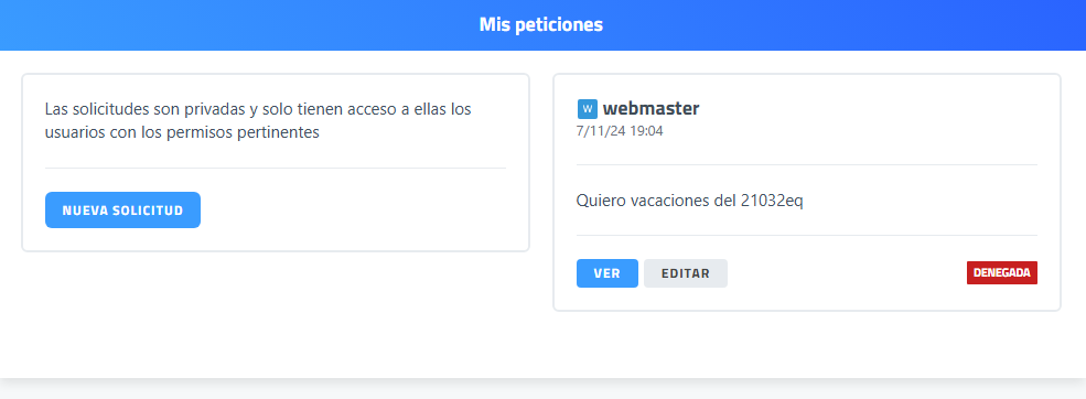 Este módulo permite gestionar solicitudes internas de forma organizada y trazable, asegurando que cada petición sea atendida por la persona responsable.