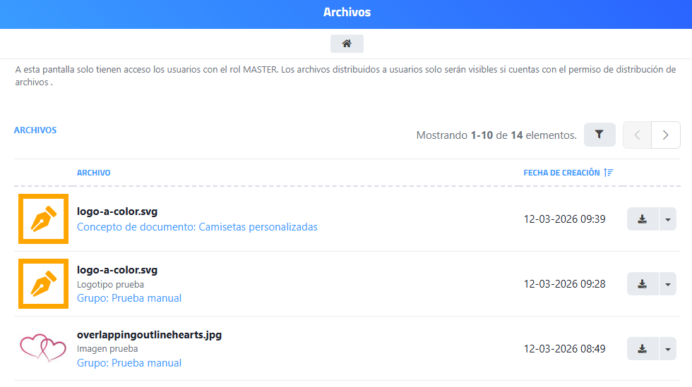 - MIS ARCHIVOS. Se accede solo a los archivos subidos por el usuario.