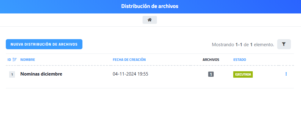 Una de las funcionalidades del Portal del Empleado es la distribución automatizada de archivos. Este sistema permite cargar archivos de forma masiva, como nóminas, certificados u otros documentos destinados a empleados específicos.