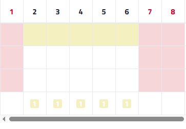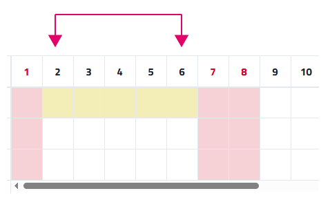 Columnas que representan los días laborables del mes seleccionados. En la imagen de ejemplo para reflejar las vacaciones de un trabajador. |