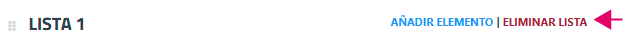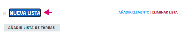 Los botones  "AÑADIR ELEMENTO" y "ELIMINAR LISTA" están ocultos. Para que se muestren poner el cursor en el espacio en blanco junto al nombre de la lista y llevar hasta el botón de "AÑADIR ELEMENTO".