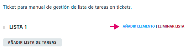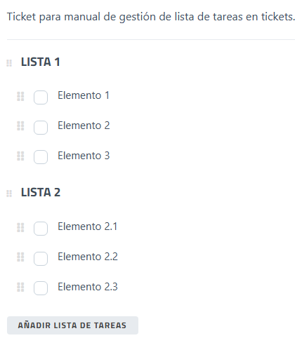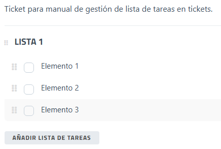 La funcionalidad de listas de tareas permite organizar un ticket en diferentes bloques de trabajo mediante la creación de listas y subtareas. Esto facilita el seguimiento del progreso y la división del trabajo en acciones más concretas.