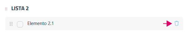 1.1.9  Para eliminar un elemento de la lista poner el cursor encima y mostrará un botón de icono papelera. Hacer clic en él para eliminar el elemento.