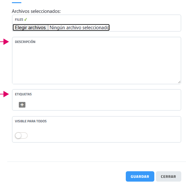 Descripción: Permite añadir información o contexto sobre los archivos.