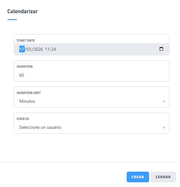 | User ID | Permite seleccionar el usuario al que se asignará el ticket dentro del calendario. |