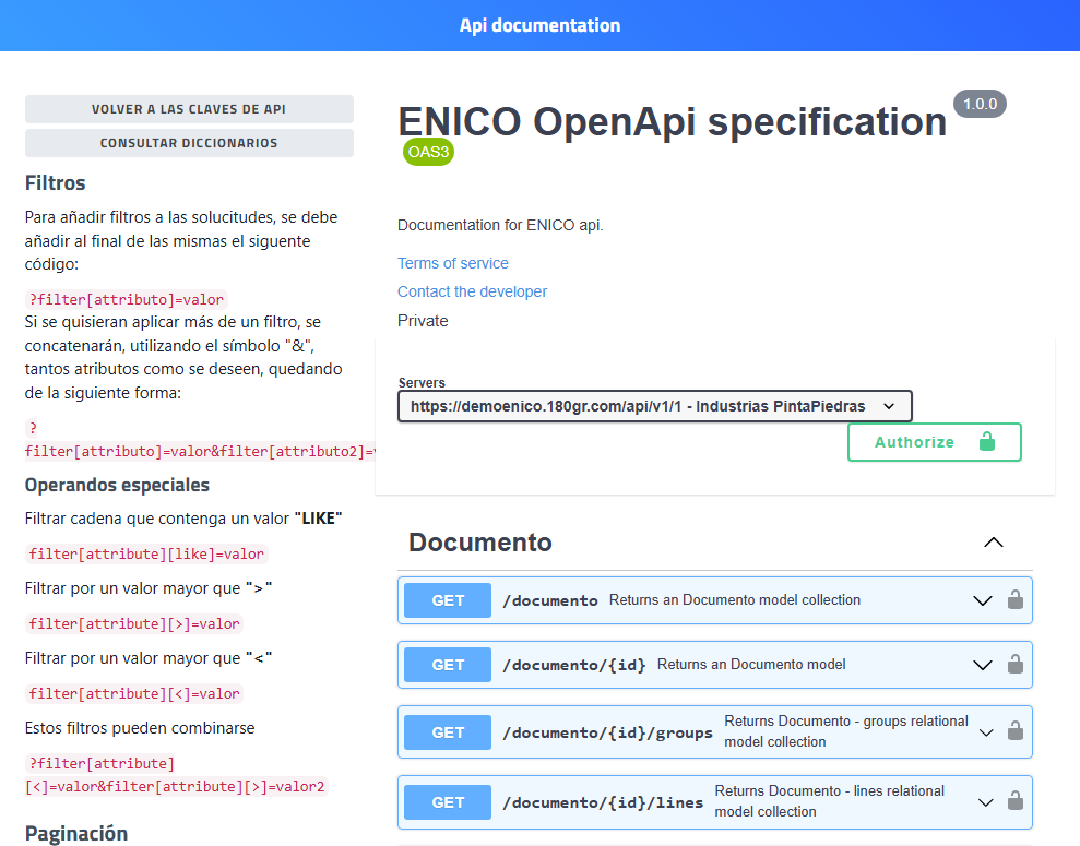 Vista parcial de la API de ENICO.