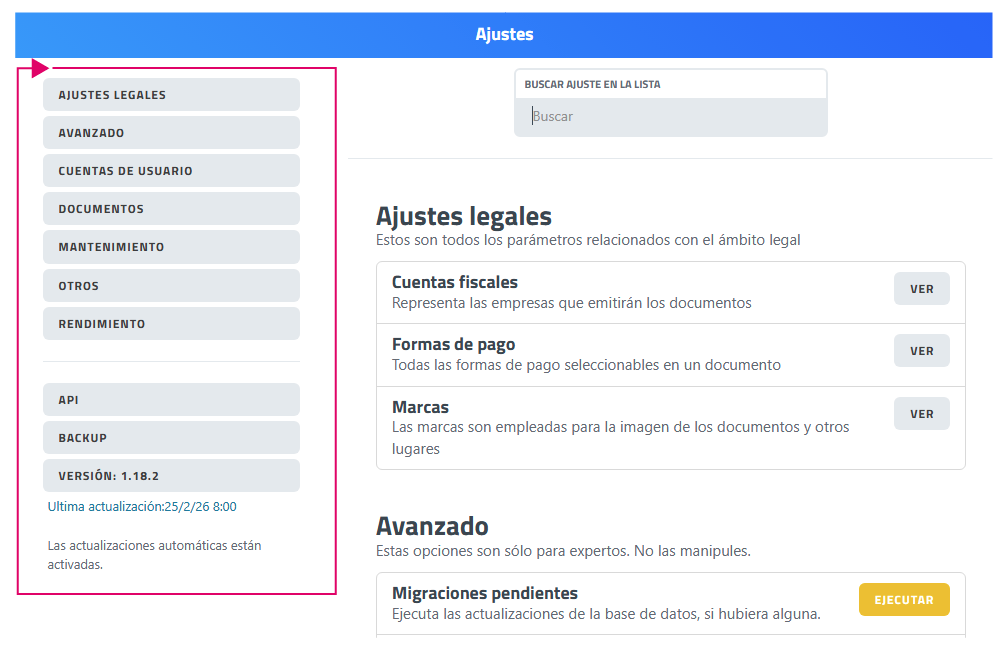 2. Avanzado ⛔. No manipular. Incluye configuraciones técnicas del sistema destinadas a usuarios con conocimientos avanzados, como parámetros internos o integraciones.