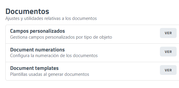 Sección destinada a la gestión de documentos dentro del sistema, incluyendo configuraciones relacionadas con su organización y uso.