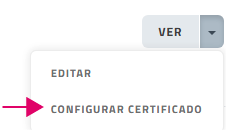 Interfaz menú opción "Configurar certificado" desplegable (▼) botón "VER" entidad fiscal