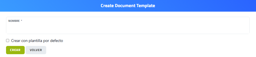 La pantalla corresponde a la sección “Create Document Template” (Crear plantilla de documento), donde se pueden crear nuevas plantillas de documentos.