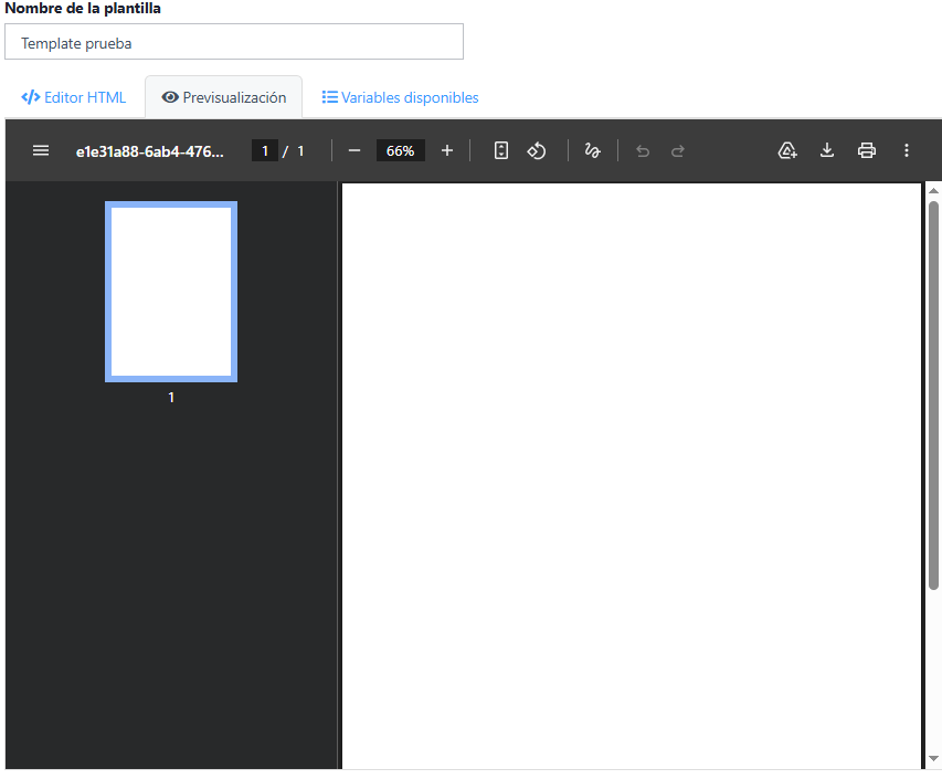 - Previsualización de la plantilla creada con html.