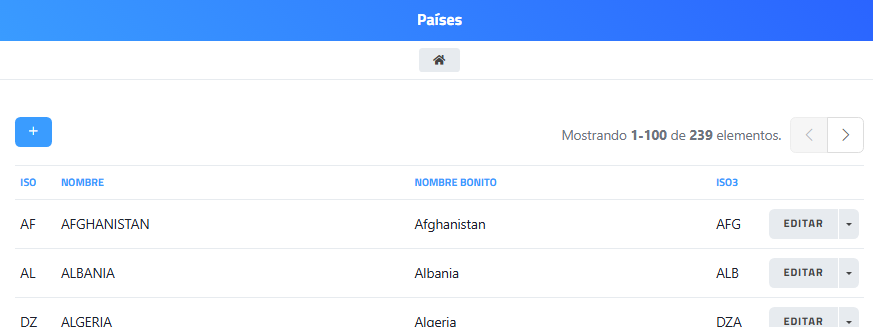 En esta sección se visualizan y gestionan los países disponibles en el sistema, permitiendo su consulta y edición para su uso en distintas configuraciones (direcciones, envíos, facturación, etc.).