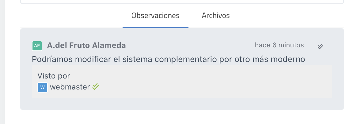 Esta funcionalidad permite verificar la visibilidad de la información compartida y asegura que todos los usuarios asignados al ticket han revisado los mensajes relevantes. Es una herramienta útil para confirmar que los responsables de la gestión del ticket están al tanto de cada actualización o instrucción que se haya añadido mediante los comentarios.