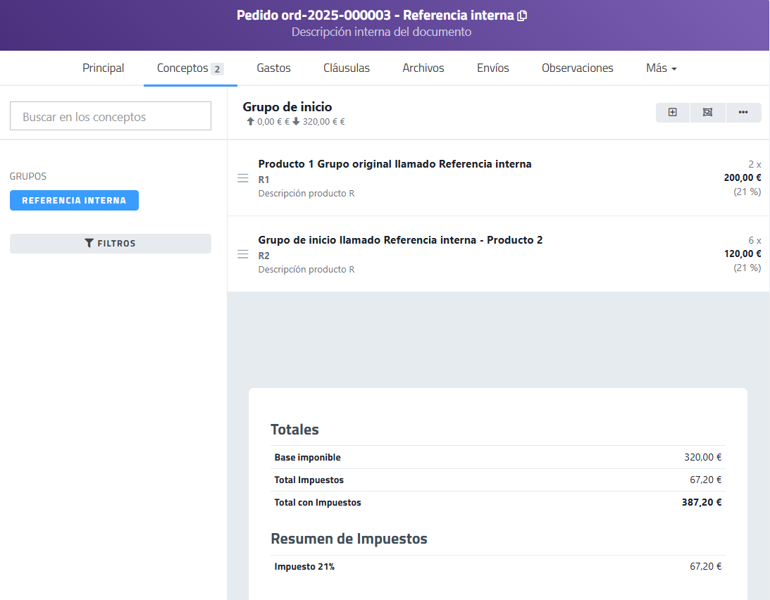 Al crear un concepto en un nuevo documento se crea automáticamente un grupo llamado principal.