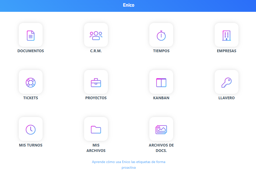 En la página de home se muestran iconos de acceso a nuevas páginas del ERP ENICO