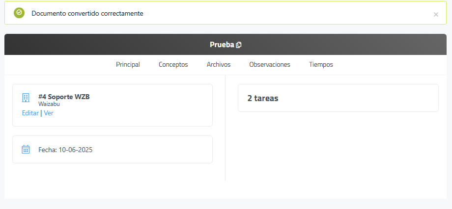 - A partir de convertir a orden de producción un documento del módulo facturación del ERP .