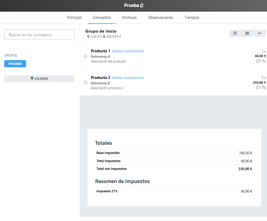Las opciones que se pueden encontrar en el menú se añade el módulo "Producción". Este nuevo módulo Permite crear ordenes de producción y dispone de una sección de ajustes. para las ordenes de producción.