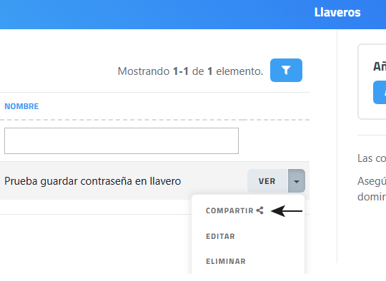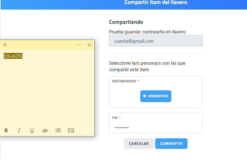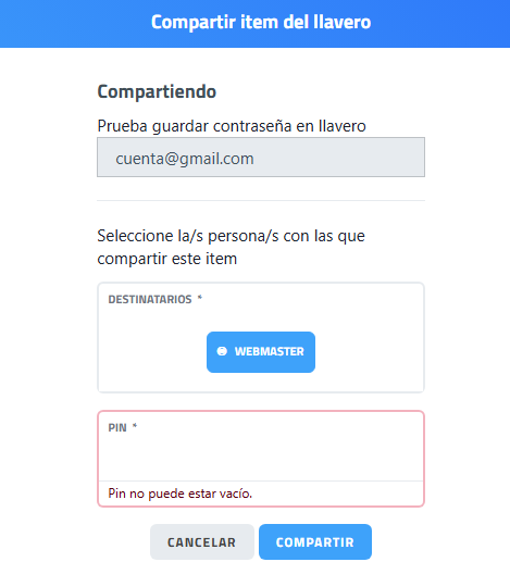 Se puede compartir una contraseña con usuarios que tengan permiso para acceder al módulo llavero.