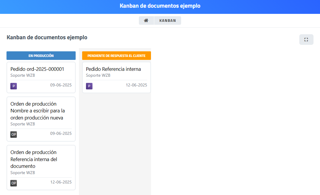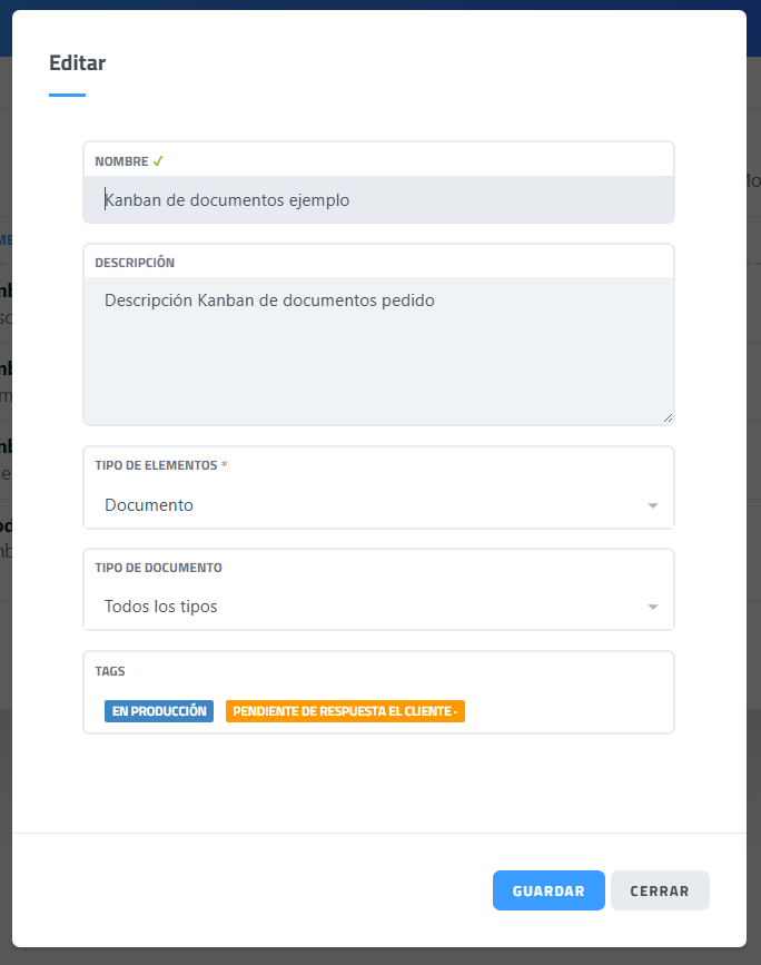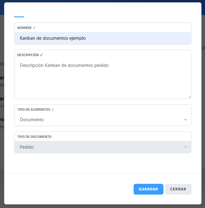 | Tipo de documento | Seleccionar con que tipo de documento se quiere operar con el Kanban |