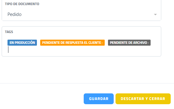 Al hacer clic en el icono de "+" muestra las etiquetas usadas recientemente y permite seleccionarlas.