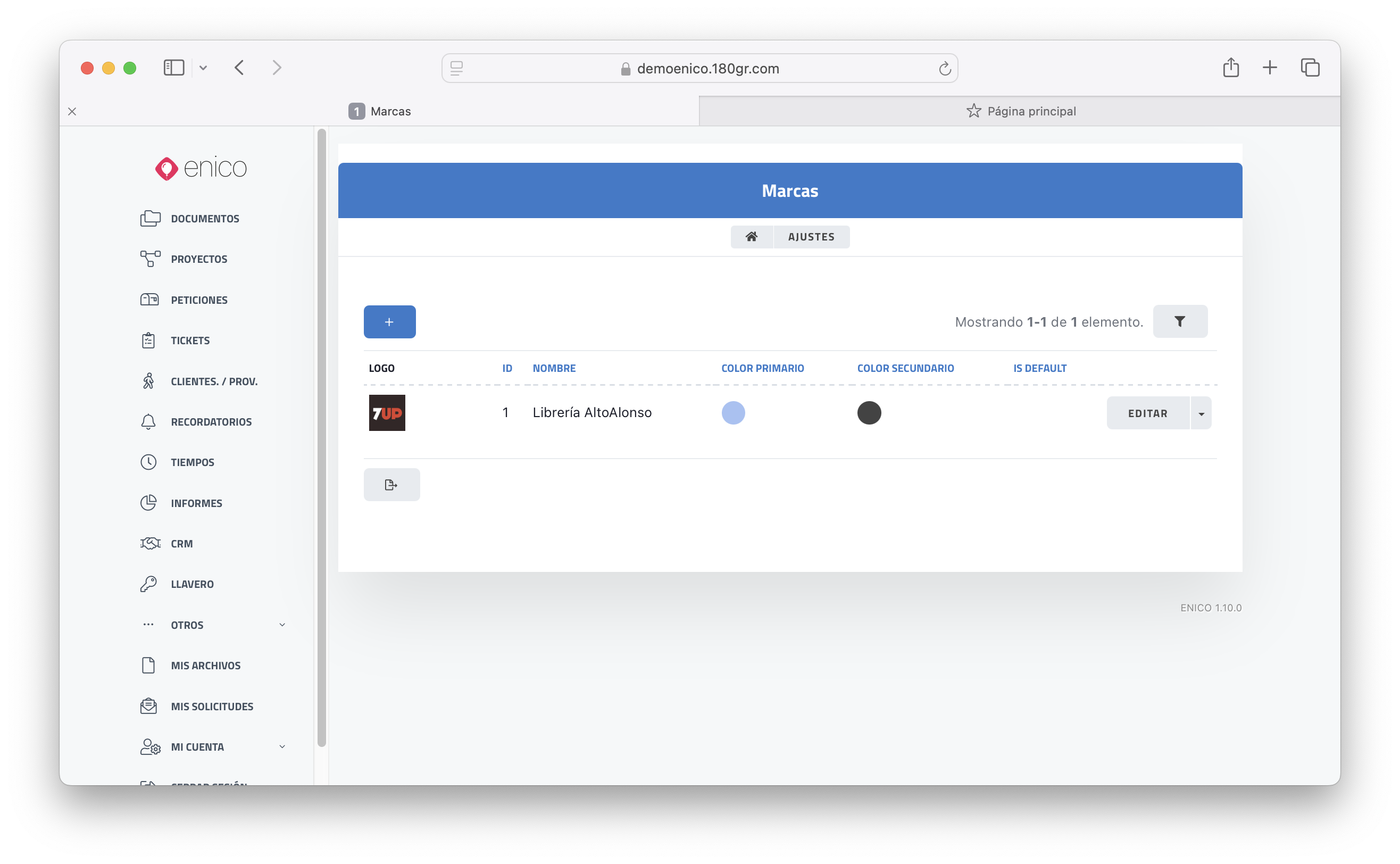 Dado que ENICO soporta múltiples marcas para una misma cuenta fiscal, es necesario definir tanto las Cuentas Fiscales como las Marcas asociadas. Mientras que la cuenta fiscal establece la entidad legal de la empresa (como vimos en el apartado anterior), la marca representa la identidad comercial que verán los clientes.