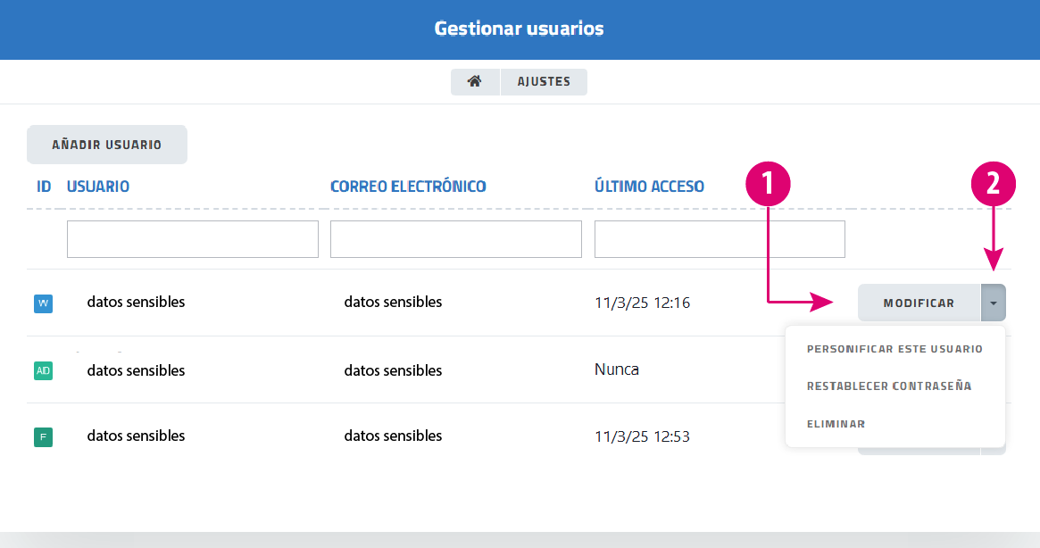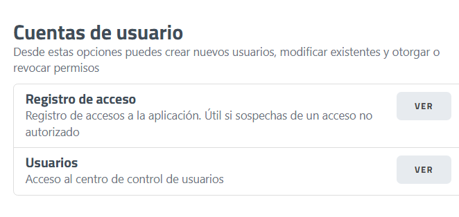 Desde estas opciones puedes crear nuevos usuarios, modificar existentes y otorgar o revocar permisos