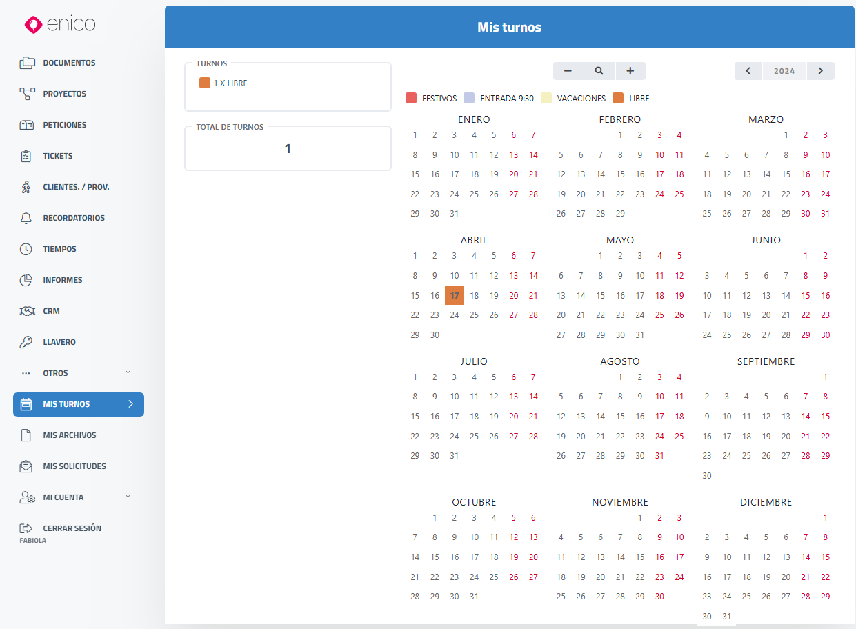 El portal del empleado de ENICO es una herramienta potente y práctica, ideal para gestionar la información y el día a día de los empleados de manera interactiva. Entre sus funcionalidades destaca el calendario de empleados, que permite visualizar y gestionar las jornadas laborales y ausencias de cada trabajador. El calendario es intuitivo y fácil de manejar: los empleados pueden acceder a sus propios calendarios de forma individual, y los administradores pueden visualizar un calendario global de todos los empleados para tener una visión general. Además, se pueden marcar distintos tipos de eventos y días festivos, adaptándose a las necesidades de cada empresa.