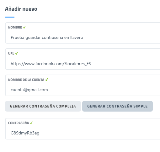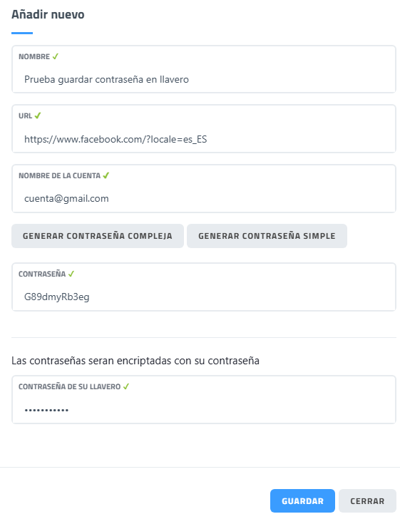 Si la PRINCIPAL es correcta el llavero permitirá al usuario guardar la ESPECÍFICA con el botón "Guardar".