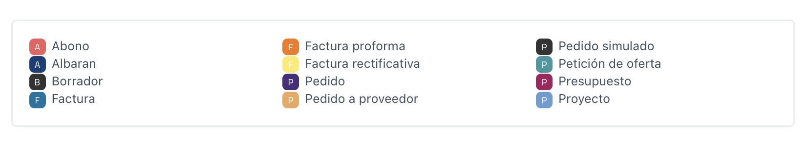 • Factura proforma (F): Naranja.